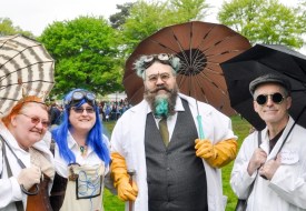 They are fully decked out as steampunk-inspired lab scientists and each person has different- colored hair which I decide to use as identification. The way they give their answers reflects anger about the administration’s views and actions.