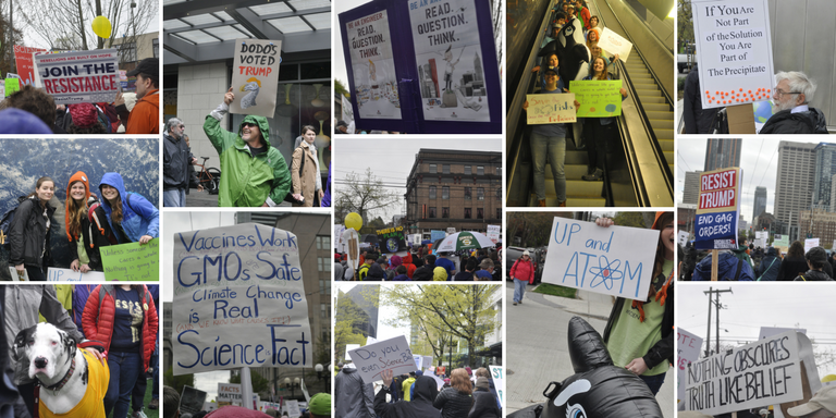 As I walked onto the Seattle Link to get to Capitol Hill for the march, I noticed hundreds of people were joining me. When I got to Capitol Hill, I saw that thousands were. The highly-publicized March for Science took place worldwide on Earth Day this year and even though I am writing this over two weeks later, the Facebook page still has 13,575 members. But who were those marchers and why were they marching? I saw people with all sorts of signs that indicated what the proud bearers were marching for. They included statements such as ‘I’m With Her’ next to a drawing of the world, ‘There Is No Planet B,’ ‘Fund Science Not War,’ and ‘Ice Does Not Have a Political Agenda It Just Melts.’ These signs were related to climate science and science funding, while others I saw stated things like ‘Resist Trump,’ ‘Science Trumps Lies,’ and ‘Socialism Now,’ which were more clearly grounded in anger at the current political situation. The diversity of these messages told me that people were marching for different reasons, even if those reasons ultimately overlap in several ways. Inference from signs aside, I knew the best way to discover people’s purpose and driving force for attendance at the March was simply to ask.