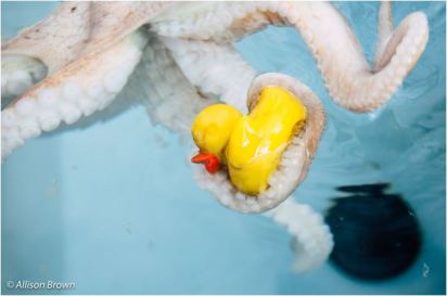 As habitats are negatively affected, noise pollution fills the ocean, and ocean acidification affects the shells of octopus’s food, the knowledge that if need be we can keep breeding populations of these incredible animals in our world is reassuring. In fact, it appears that populations of the creatures are doing remarkably well, though we cannot be sure as they are elusive organisms and that status could change quickly. Regardless, octopuses are charismatic and wonderful at raising awe and respect for the ocean and its inhabitants. The amazed looks on the participant’s faces as they interacted with these creatures would have been worth the visit even if I hadn’t gotten to hold “hands” with an octopus.