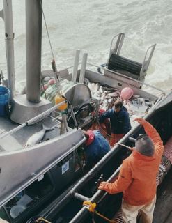 Much of what made the experience memorable was getting to know so many different tenders and their crew members. Tender boats take many forms, but all are large, often over 100 ft, and have a capacity to hold between 100,000 and 1 million pounds of fish. When not supporting the short Bristol Bay fishery, many boats fish for crab, pollock, or other species, aid research in the South Pacific, or go on expeditions to the Arctic. In the summer, they are hired by one of several different seafood companies to buy the freshly-caught salmon directly from fishing boats and deliver it to the companies’ respective processing facilities, either on shore or elsewhere at sea. For many of the crew members, especially crabbers, the Bristol Bay summer is their “down time”. The crews come with stories and personalities that led to many unforgettable moments and conversations. As QCs living with many different crews, we made ourselves useful by pitching in on tasks aboard the tenders. These included creatively combining dwindling ingredients to make a meal, throwing and tying lines, pumping gas, taking an anchor watch, or digging for blocks of frozen cheese in the walk-in freezer.