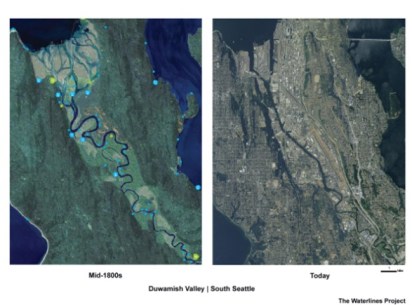 Once a meandering waterway that drained over million acres of watershed and five major rivers, the Duwamish watershed supported productive and diverse ecosystems and abundant salmon, plants, and other wildlife. The Duwamish Tribe – the host tribe of Seattle and King County – had one of their largest villages along the banks of the lower river, coexisting with the river ecosystem until the village was burned by settlers in 1895. Non-Native settlers violently displaced members of the Duwamish Tribe and other Coast Salish peoples, many of whom relocated to reservations throughout the region. Logging, straightening, large-scale watershed engineering projects conducted by the Army Corps, and other hallmarks of development heavily impacted the watershed and reduced salmon habitat in the Duwamish by over 97 percent by the early 1900s. The city subsequently filled the tidelands to enable industrial use of the area.