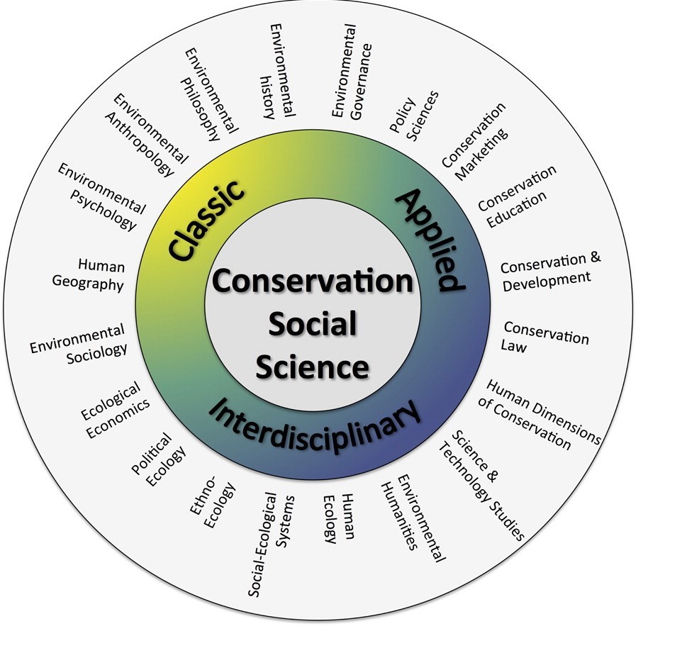 As social sciences continue to prove themselves in the conservation realm, new disciplines are being defined. Recently, researchers illuminated 20 different disciplines that make up conservation social science (Figure 1). As conservation issues continue take center stage in the 21st century, we will can expect see more and more social sciences being used to help solve these pressing issues.