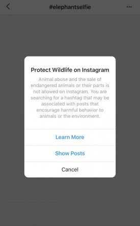 How does scrolling through newsfeeds turn into action? Instagram has an idea. They rolled out a feature that alerts users when they search or use hashtags associated with activities that may be harmful to wildlife or the environment. By creating this pop-up, users are paused in their flow of posting online and given a link to where they can learn more. Hopefully, this prompts people to change their behavior and get others involved to do the same.