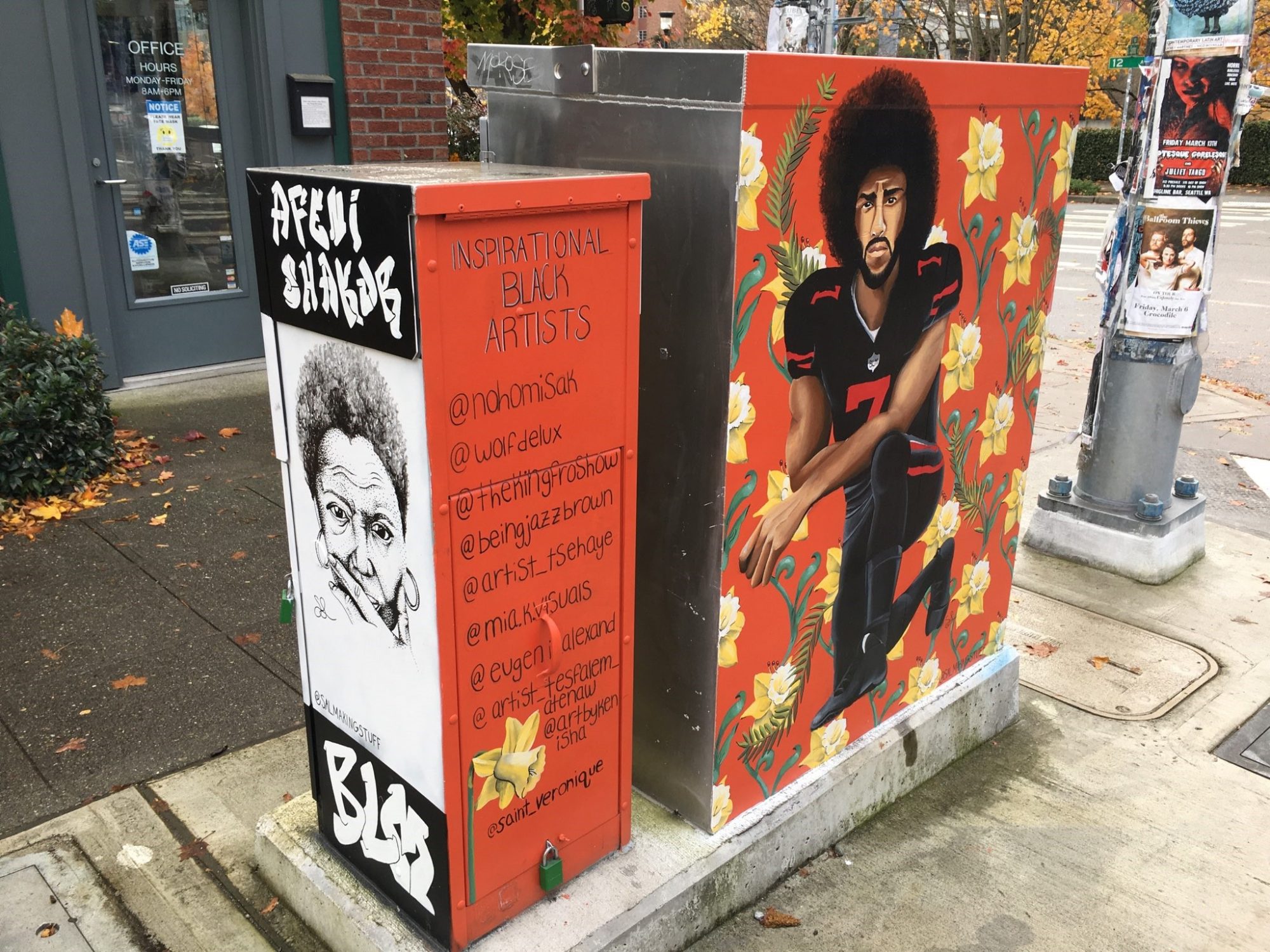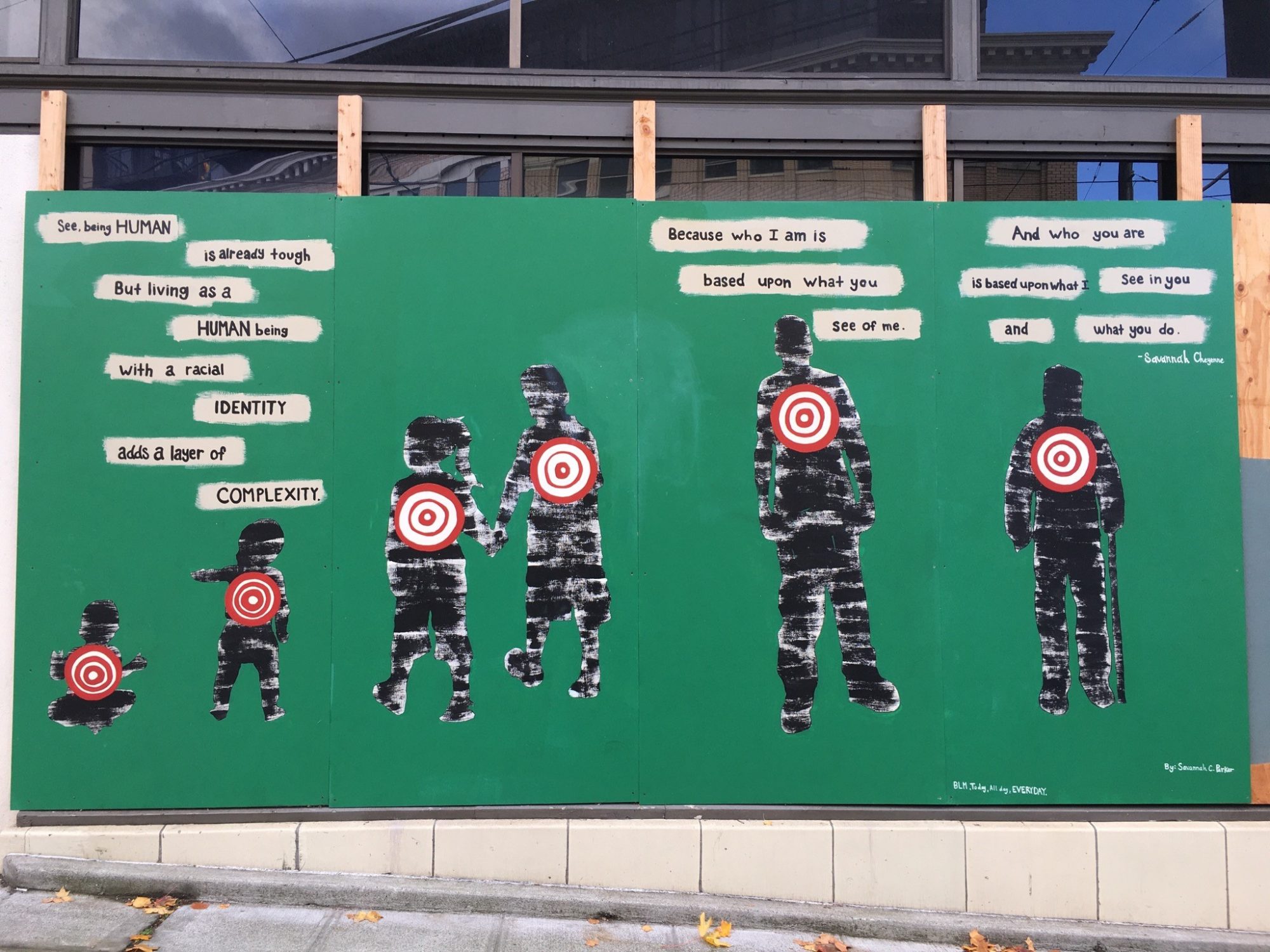 I am a habitual person; about four days a week this past summer, I biked south from my house in Wallingford to and around Mercer Island, traveling up and over Seattle’s Capitol Hill neighborhood. My route took me past the Seattle Police Department’s Capitol Hill precinct and through the former Capitol Hill Occupied Protest zone that launched Seattle to national prominence as a center for change. I tracked the ebbs and flows of the city’s dialogue. I passed through minutes after the police precinct had its windows smashed, and I continued to see how the building was boarded up, then surrounded with a chain-linked fence, and ultimately housed in a concrete barrier. I observed the near-daily peaceful protests and gatherings for solidarity and support of Black lives, and I watched as the already colorful neighborhood became increasingly clothed in new street art.