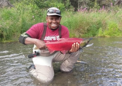 “For the past two summers I’ve been going to Bristol Bay, Alaska, researching where sockeye salmon like to spawn on the streamscape on two streams flowing into Little Togiak Lake. These two creeks have been monitored for over twenty years. I am figuring out if there are particular habitat conditions on the lake influencing salmon movement and where they prefer to breed.
