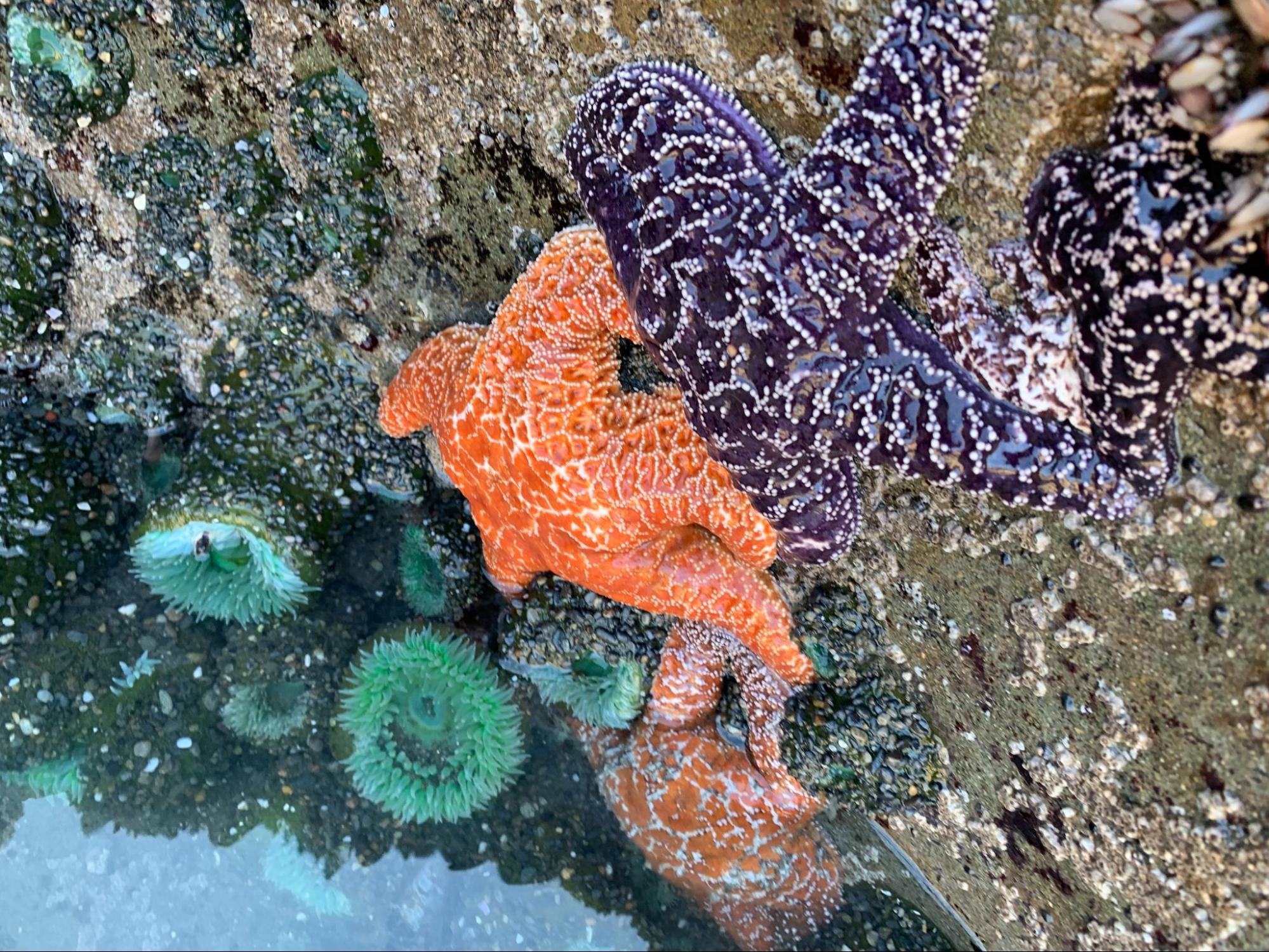 Anemones are an animal that I often associate with aquarium touch tanks, so when I first encountered them in the wild when I moved to the Pacific Northwest, I thought they were the most fascinating, alien-like creatures I had ever seen. Aggregate anemones are one of the species I most often find at Discovery Park. During low tide, the beach goes out for hundreds and hundreds of yards, exposing rocks, anemones, intertidal ecosystems, and other sand-covered creatures. I love spending time observing the changes in these animals as the tide uncovers and recovers them. Their adaptations allow them to bridge the land and the sea, connect humans with nearshore environments and provide joy to anyone who encounters their whimsical nature.