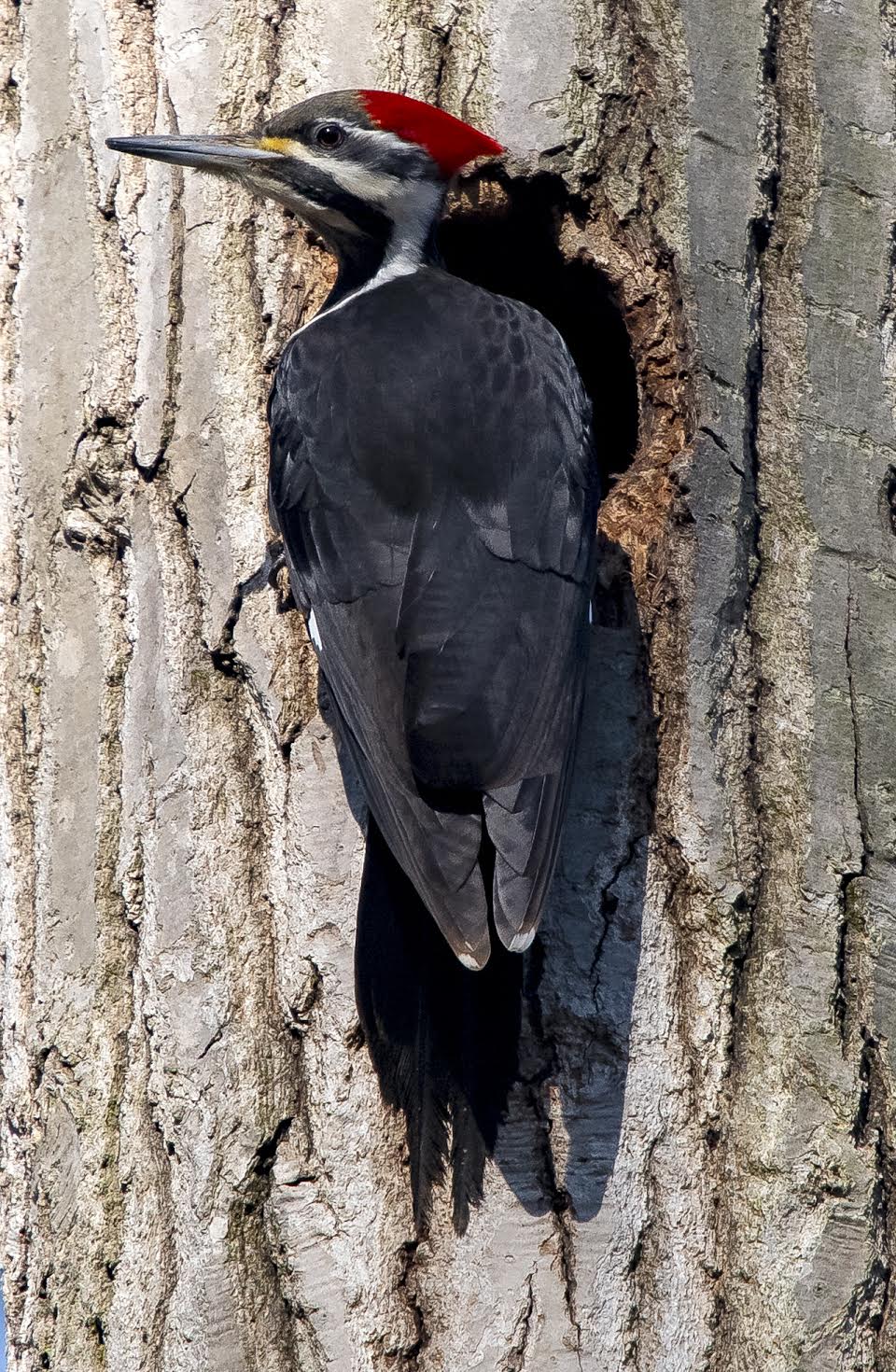 It took me almost a year to see a pileated woodpecker at Discovery Park, I saw my first one in August. Since then, I have encountered them a few more times. Most recently, I was walking on one of my favorite, least-crowded trails in the park, cutting through a bed of ferns under the canopy of Douglas firs and big leaf maples. I had heard the sound of a woodpecker drumming into the wood of a tree, and when I looked to my right, there was one ten feet from me. Typically, pileated woodpeckers are shy, flying away quickly as humans approach. However, this one was deep in its search for food, pecking away at the dead tree just a few feet above the ground. It was seemingly unbothered by my presence, so Maple and I watched for several minutes. It danced up and down the trunk until Maple and I decided to continue our walk through the forest.