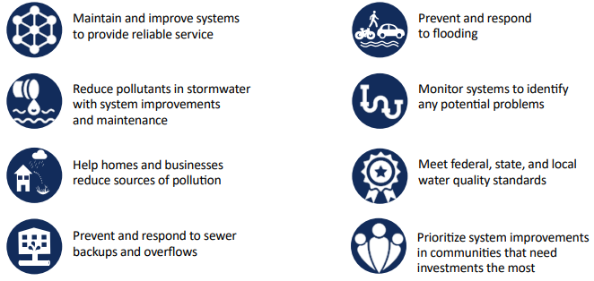 The analysis process was intentional and complex. Twenty-eight different projects were organized into five categories: System Capacity, Water Quality & Aquatic Health, Condition & Maintenance, Resilience, and Social, Economic, & Regulatory. Each project was given a risk-based prioritization score which was based on the likelihood of a problem occurring, the consequence of said problem, and potential equity considerations. If projects have the potential to disproportionately affect disadvantaged and/or historically excluded communities, equity was analyzed and considered in the score.