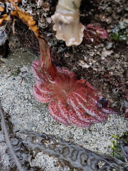 During one day with a particularly low tide, we set out on an adventure to find brittle stars in the cracks of rocks but quickly changed our focus when a student flipped one over to uncover a bright red alien-like creature. In front of us was a pizza-sized sea star clinging to the rocks, something I didn’t think I would ever have the chance to see in the wild.